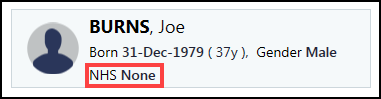If a patient does not have an NHS Number, this is indicated by NHS None.