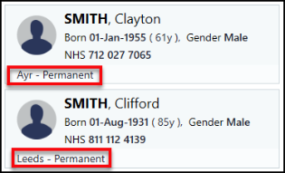 - Shared Care Setting only - Registered practice, where the patient has multiple registrations with different practices, select the entry with Permanent as the registration status.