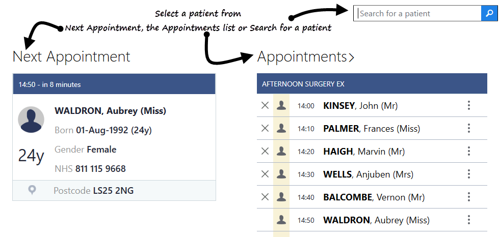 See Calling a Patient and Video Tutorials for further details.