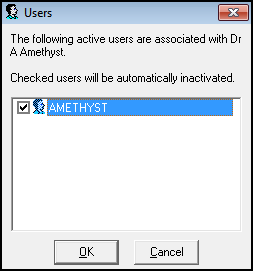 If the inactive account is linked to Mail Manager and Staff Groups, an Assign Access Rights alert displays, asking you to select the members of staff to have access to the mail. Select the appropriate boxes.