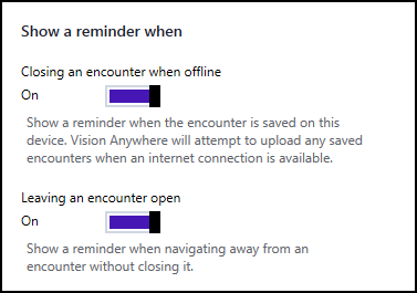 Important - The default setting is On for all users. It is important to synchronise consultations, Vision Anywhere automatically deletes unsynchronised data after 90 days.