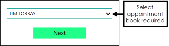 When you login to Vision Anywhere, you must first select the appropriate organisation, for example, your practice or a shared care organisation, followed by the relevant appointments book. The books display in alphabetical order: