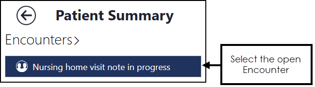 From the selected patient's Patient Summary screen, the last Encounter displays under the Encounters - Last Encounters header. If you have met the above criteria, Edit encounter