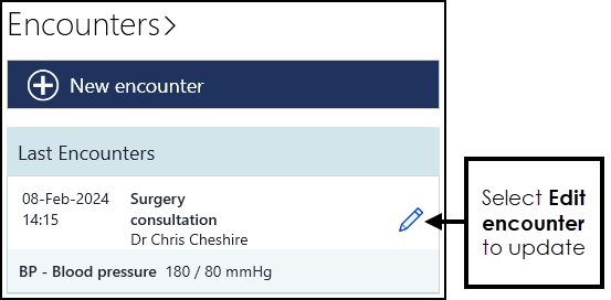 - You can now add to or edit the Encounter as required, see Adding Clinical Data and Editing Data for details.