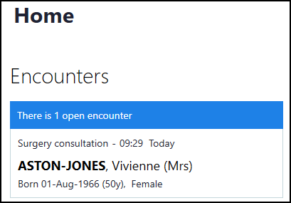 Note - If you have printed medication you cannot leave the Encounter open. This is to ensure that the medication details are immediately synchronised with the main patient record.