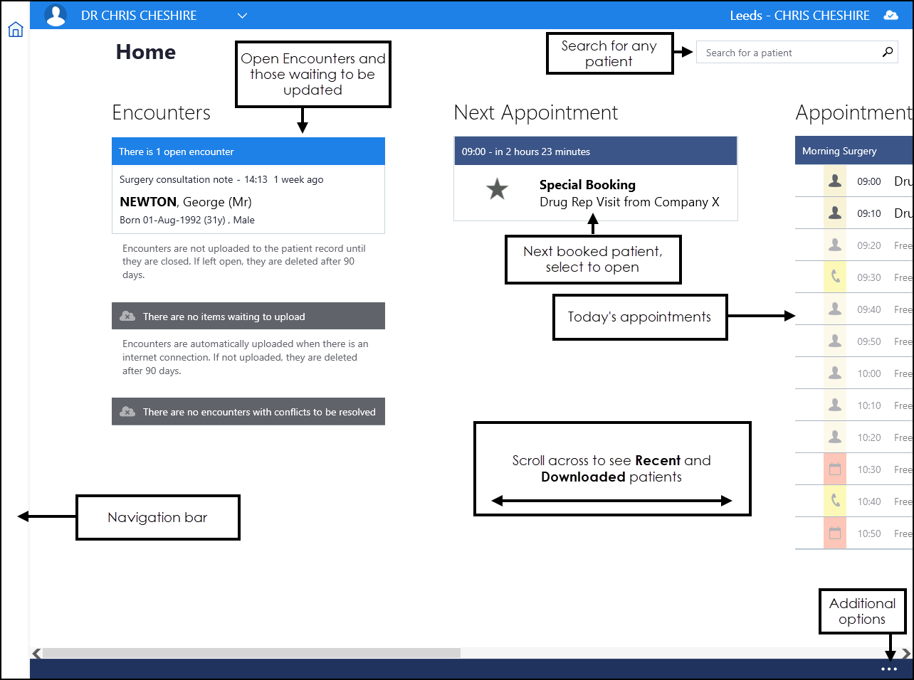 - Closed patient encounters - Any encounters that are closed and are waiting to be synchronised at the next log on, when an internet connection is established.