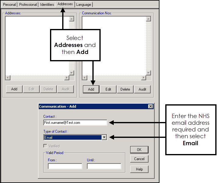 - Contact - Enter the staff member's own NHS email address.
