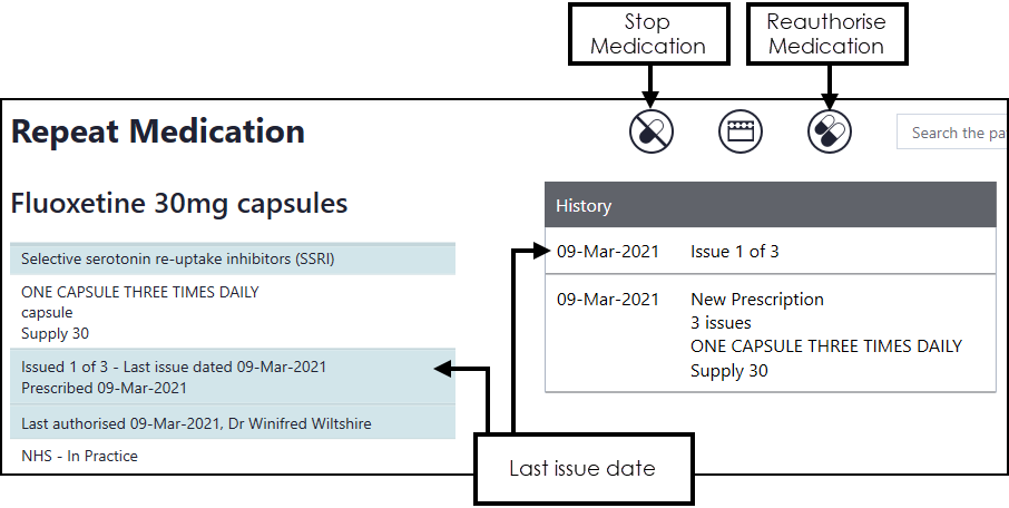 See Issuing Repeat Medication and Repeat Synchronisation Overview for further details.