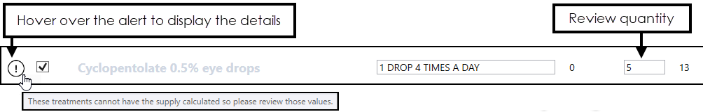 - Treatment cannot have the supply calculated - This generally applies to treatments such as drops, inhalers and creams, or medication with As Directed in the dosage instructions:
