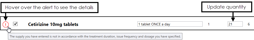 Note - If you reauthorise without updating the quantity, a new repeat master is created with an indivisible quantity. - Supply does not match duration, issue frequency and dosage