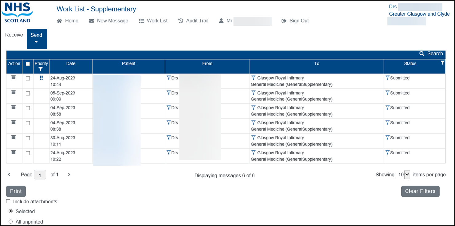 To view the Supplementary Message added via SCI Gateway, select the patient in the usual way