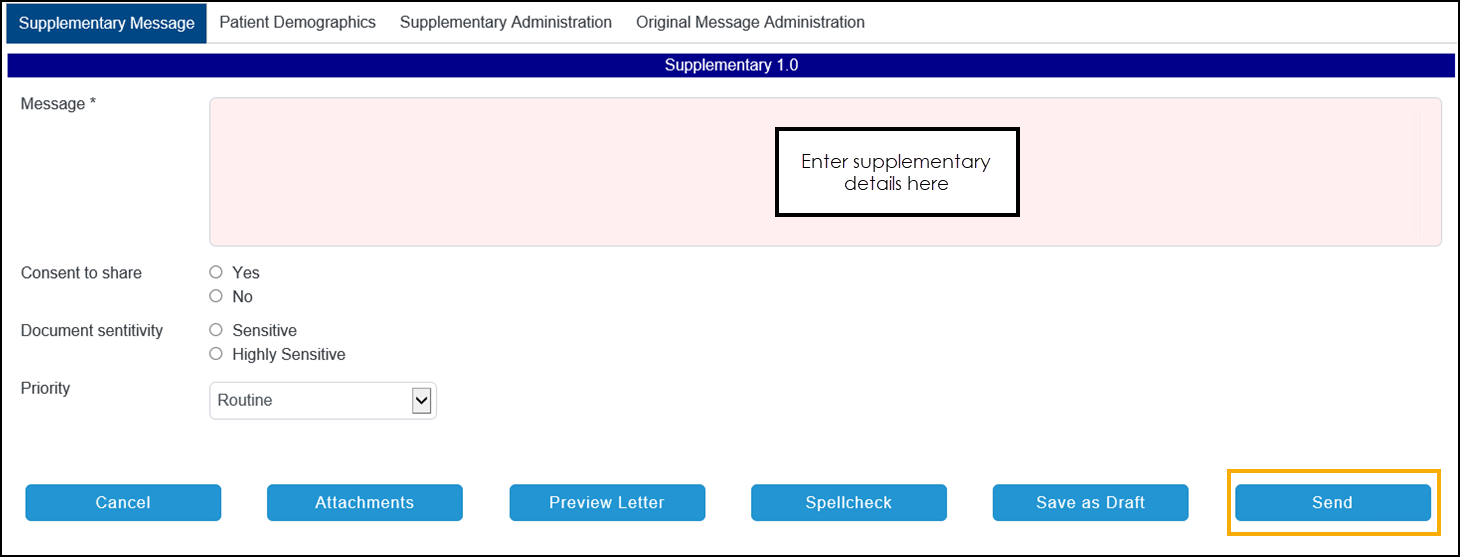 If you need to add additional details to a message that is already sent, you can add a Supplementary Message.
