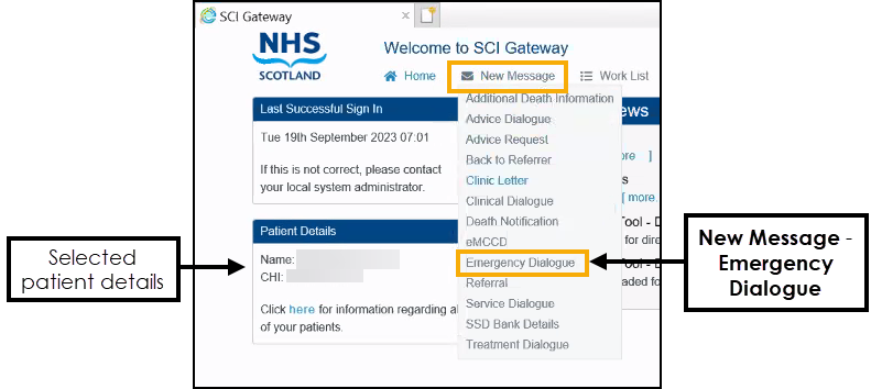 You can create an Emergency Dialogue message in SCI Gateway in one of two ways: