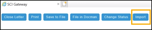 4. The SCI Gateway message opens, select Import to import the message into the patient's clinical record.