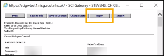 You can reply to a message in SCI Gateway in one of two ways: