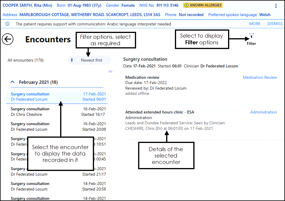 To view a list of a patient's Encounters: