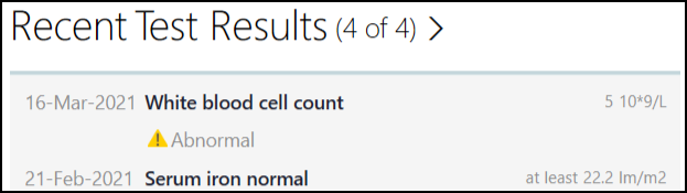 Patient Summary - Recent Test Result - A warning triangle:
