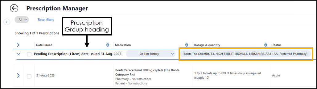 Preferred Pharmacy - You can now see the patient's Preferred Pharmacy from the Prescription Group Header: