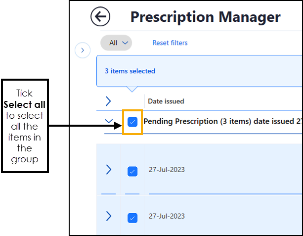 Select all - You can now select all items within a specific prescription group, simply tick Select all in the Prescription Group Header: