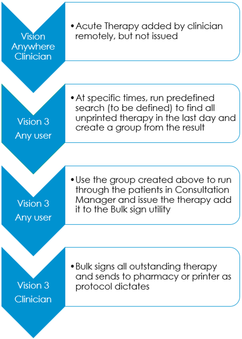 If you are using Vision Anywhere for your remote consultations, you can send any acute therapy back to Vision 3 to issue as an Electronic Prescription Service (EPS) prescription.