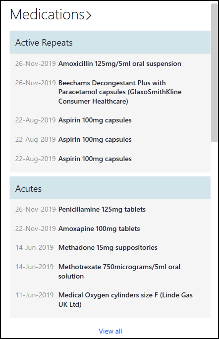 • Acutes - Displays all acute scripts issued in the last 2 years: