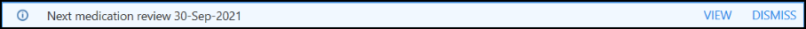- If a patient has a Medication Review due or overdue in Vision 3, an alert banner displays on their record. If the medication review is: