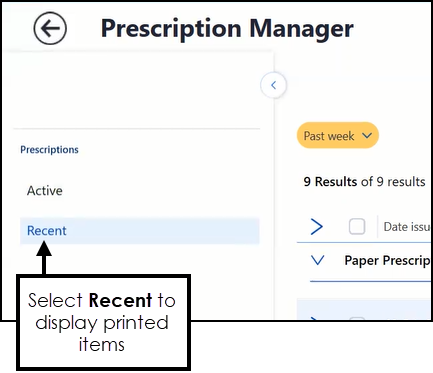 - Items printed in the last week display by default, select a wider time frame using the Filter