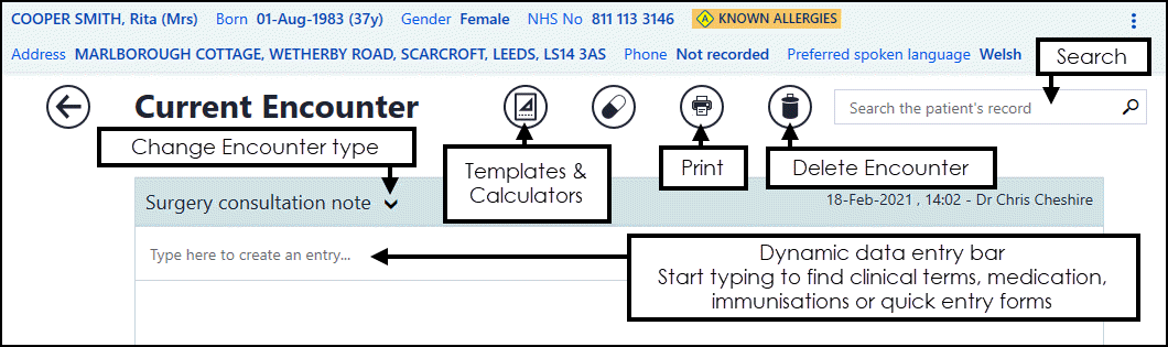 Important - A patient record is not locked when you open an Encounter, other users can access and add to the same patient record at the same time.