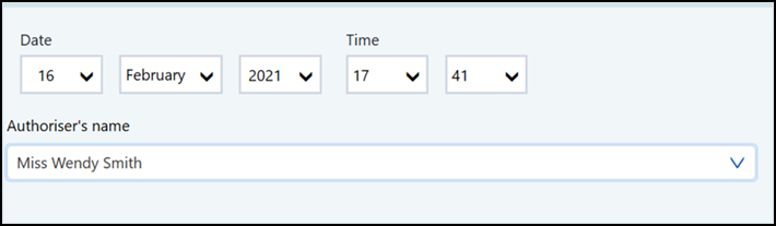 Authoriser's name - When recording medication, the Clinician name option has been renamed Authoriser's name: