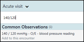 A numeric value this automatically matches to the appropriate area, for example, 140/20 is recognised as a blood pressure reading:
