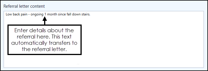 There is a specific Vision Anywhere merge field - <<REFERRAL_Content>>, this takes the entry in the Referral letter content box and imports it into the letter: