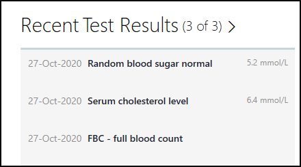 Patient Summary - Recent Test Result - A warning triangle:
