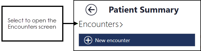 - With the patient selected, from the Patient Summary screen, select Encounters: