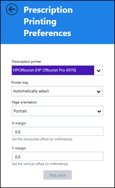 - Prescription printer - Select your printer.