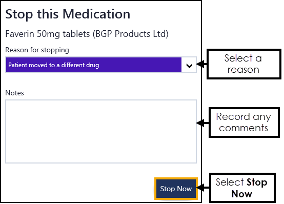 You may need to stop issues of a repeat master if, for example, the medication has changed. To stop issues being made against a repeat master: