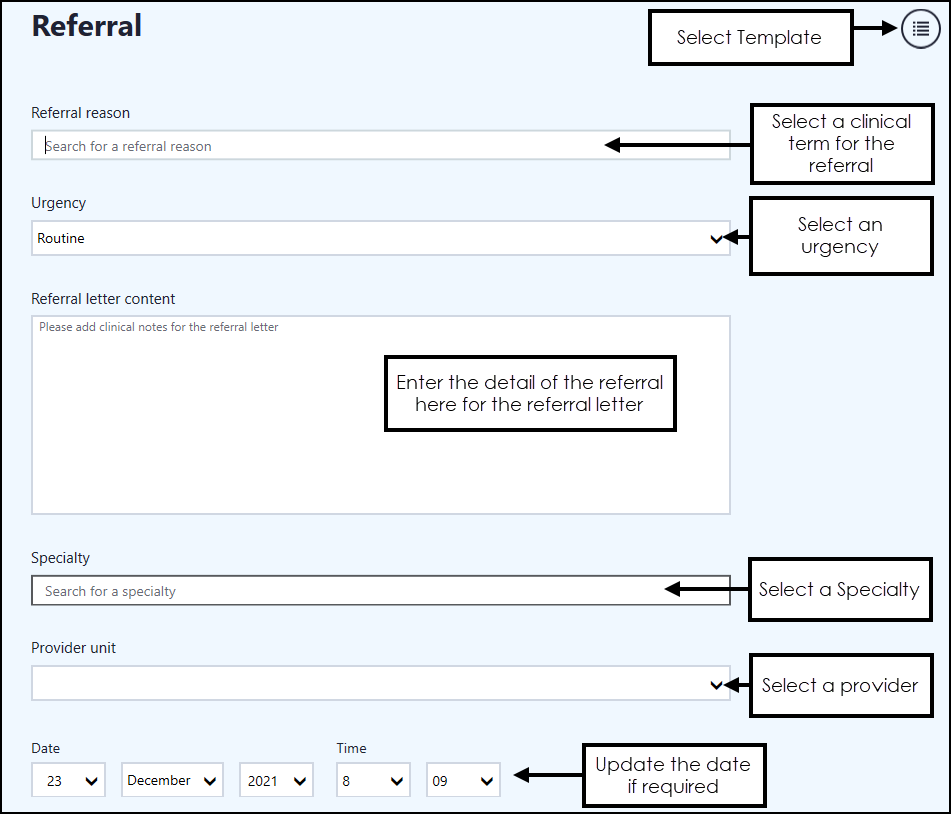 Important - Referral letter templates need to be configured, see Creating Letter Templates within Vision 3 for details.