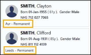 - Shared Care Setting only -Where a patient has multiple registrations with different practices, select the entry with Permanent as the registration status: