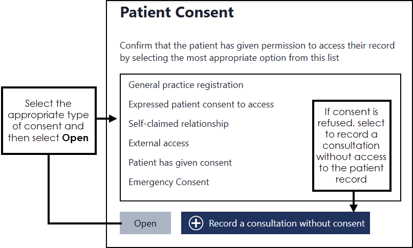 - Emergency consent - Emergency access for urgent treatment, for example, patient incapacitated.