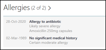 Select the Allergies heading to display the list.