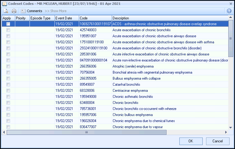 - Select Apply. You can also select a priority and enter freetext notes.Note - Some QOF/QAIF categories require a drug to be present in addition to the diagnostic clinical terms for the patient to display on the register.