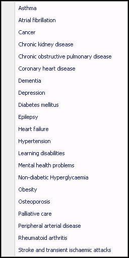 - When adding a patient to a register that also requires therapy recording to count for QOF/QAIF, a list of applicable therapy items displays below the clinical term list. You have the following choices: