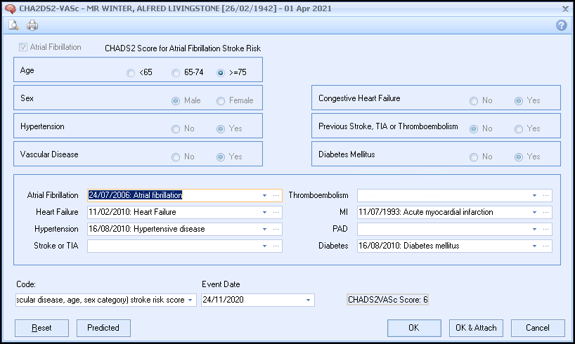- From Consultation Manager, select Vision+ from the floating toolbar and select Calculators - Cardiovascular - CHA2DS2-VASc.