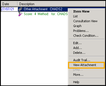 - To view an attachment, from patient's record, right click on the attachment entry and select View Attachment. The attachment displays as a PDF: