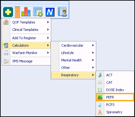 - From Consultation Manager, select Vision+ from the floating toolbar and select Calculators - Respiratory - PEFR.