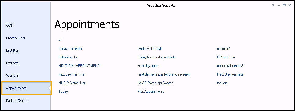 - Appointment Searches, see Sending Instant Appointment Reminders for details.