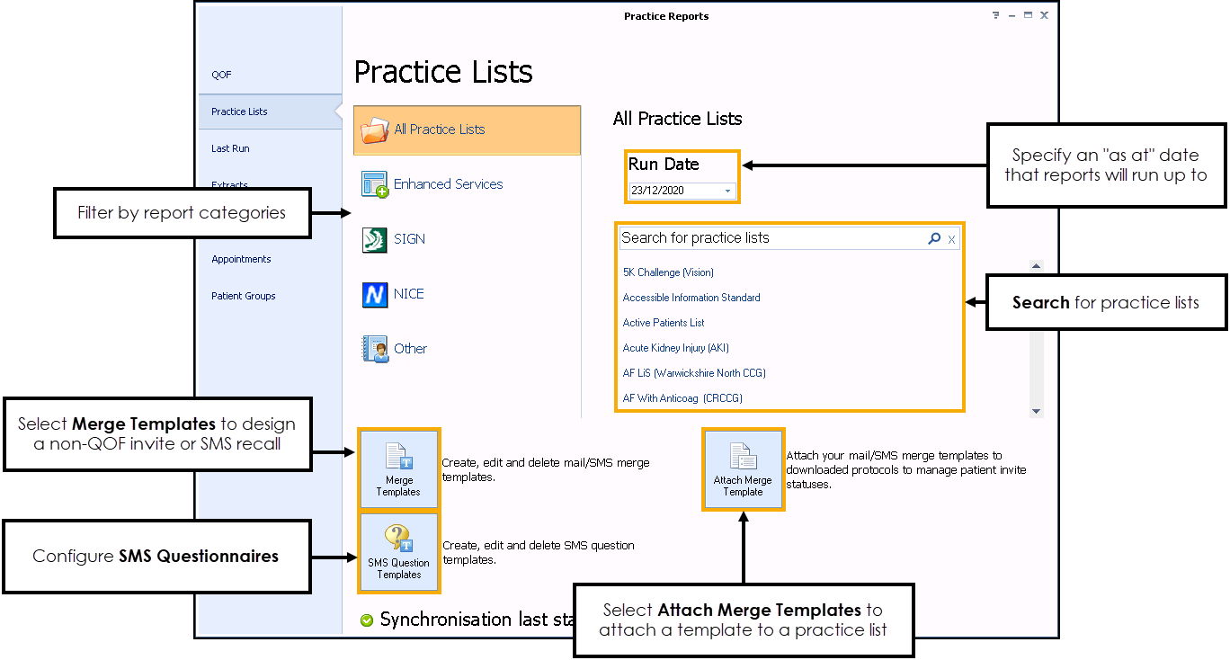 - Easy recall system which allows you to mail merge and update the recall status on the patient record with the ability to merge patients on multiple disease registers.