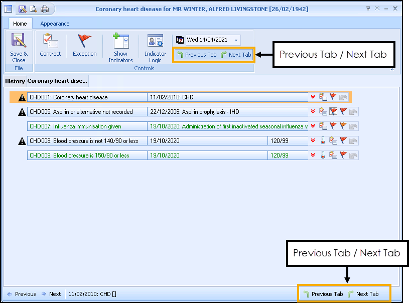 • The previous tab moves back to the previous tab in the template.