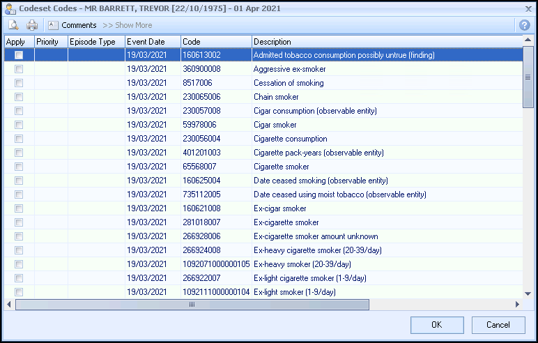 • A red arrow displays if the row contains more than one relevant clinical term.
