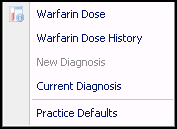Built within the Anticoagulation Manager template is a Warfarin Dosing tool. You can access the Warfarin Dosing tool direct without using the Anticoagulation template. To do this: