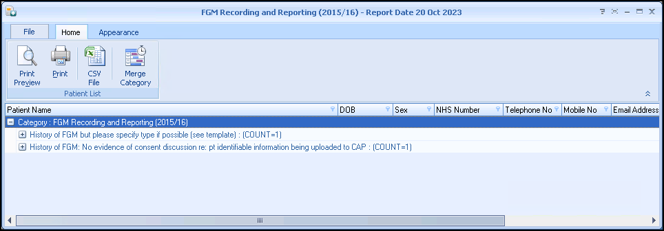 To run the FGM Recording and Reporting (2015/16) Practice Reports:
